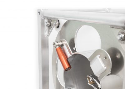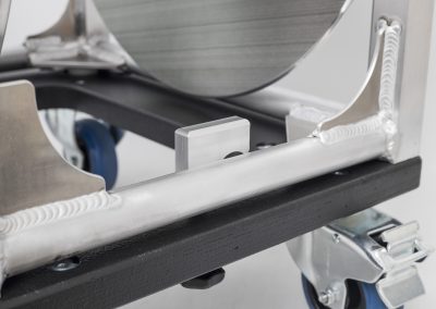 The drum can easily be rotated by a manual crank which is fixed to the drum. This feature makes it impossible to forget your crank when working in remote places, far away from your mobile unit. All bearings are sealed high end ball bearings allowing to rotate the drum even if heavily loaded.